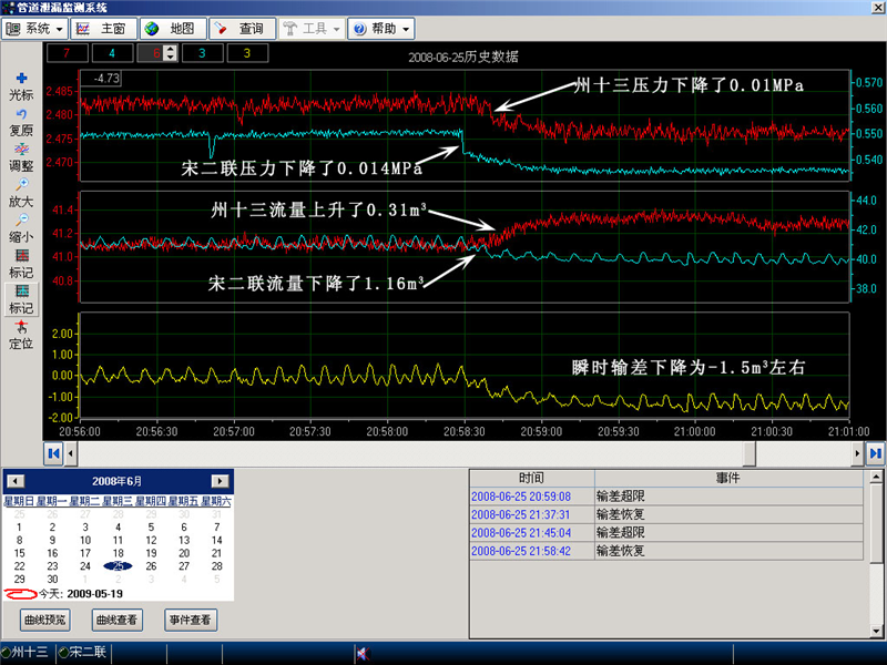 2008年6月25日州十三-宋二聯(lián)管線泄漏曲線圖