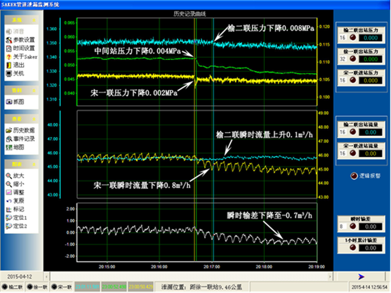 榆宋線2015年5月30日泄漏報(bào)警曲線圖